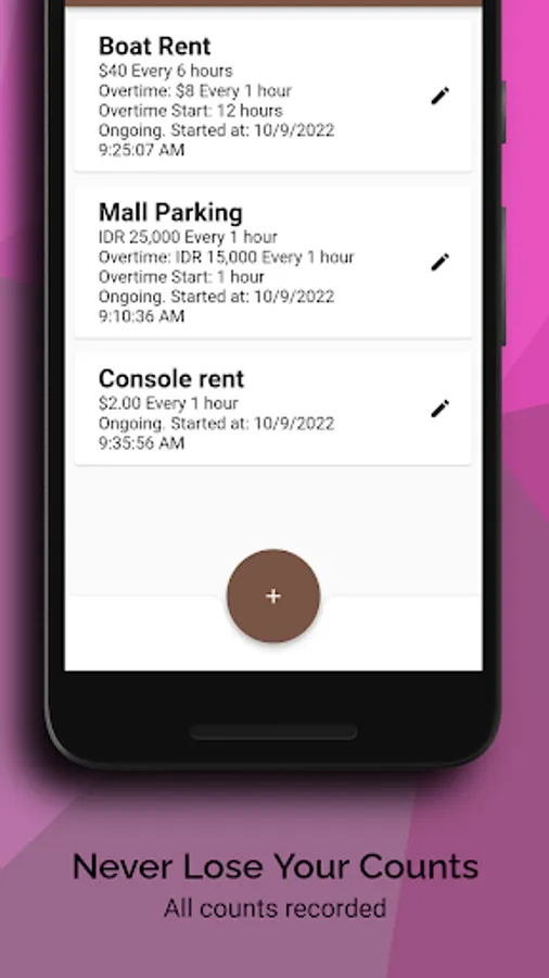 If you have a time based rental or anything else related to money and time, you can track your cost instantly using this app.