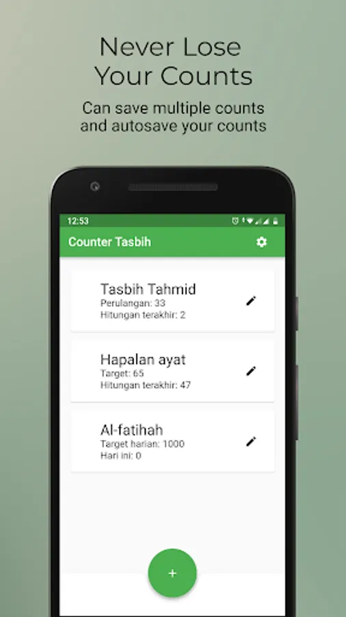 A counter with full screen touch button for easier tap, with haptic feedback you can do counting with eyes closed.