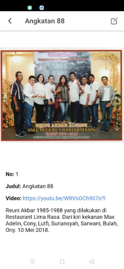 This application displays the alumni directory, news, announcements, galleries, a map of the address location of the alumni of SMAN 3 Banjarmasin students