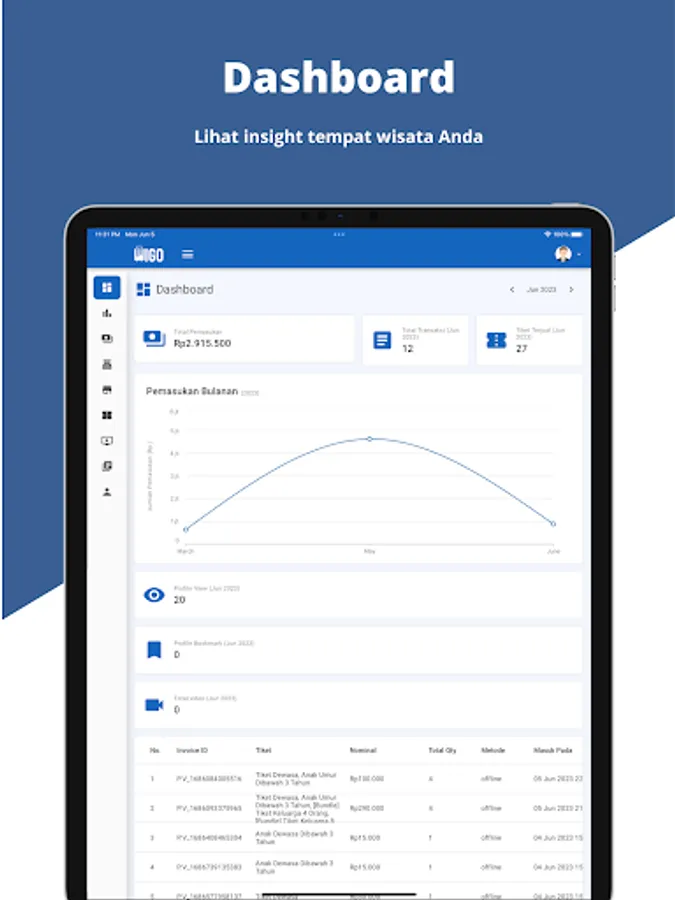 Welcome to WIGO Partner (WINER), a cool platform exclusively for businesses in the tourism industry. With WIGO Partner (WINER), we make your life easier in managing your business on the WIGO App. You can easily update destination info, set ticket prices, change schedules, and manage other content. All this is done with a simple and user-friendly interface.