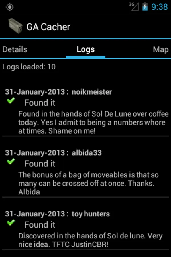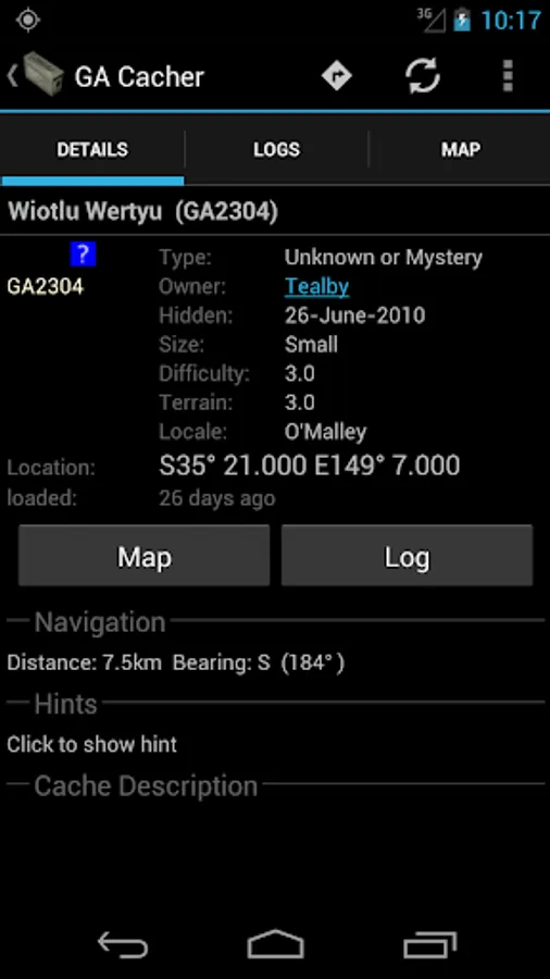 This allows you to load and display details of GCA geocaches out in the field , including logs and show location on Google maps.