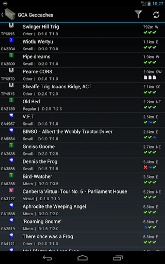 * Display nearby geocaches from Geocaching Australia, including Trig, movable, virtuals etc..