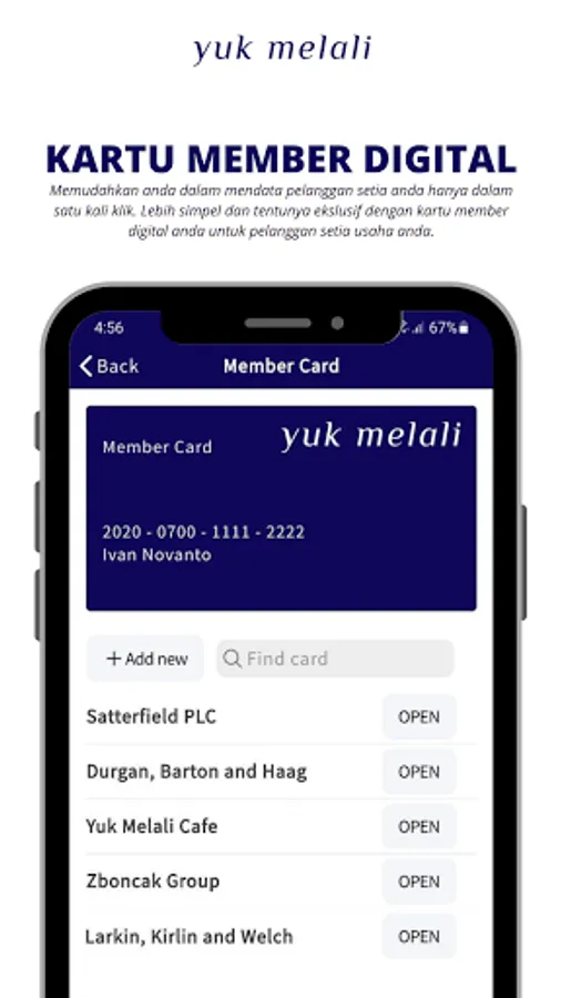 Time to move digitally with Yuk Melali, help you to easily register your customer member in just one click. Simple and surely exclusive with your own design digital member card for your customers member.