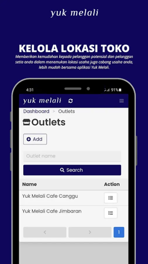 Keep your potential customers and customers member find your business location and your branch easily with Yuk Melali apps.