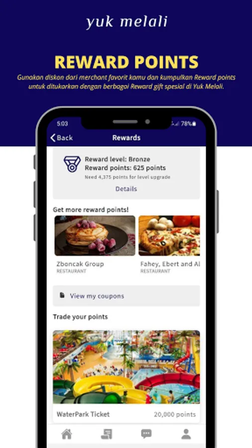 Enjoy discounts from your favorite merchants and collect Reward points to redeem with various special Reward gifts only at Yuk Melali.