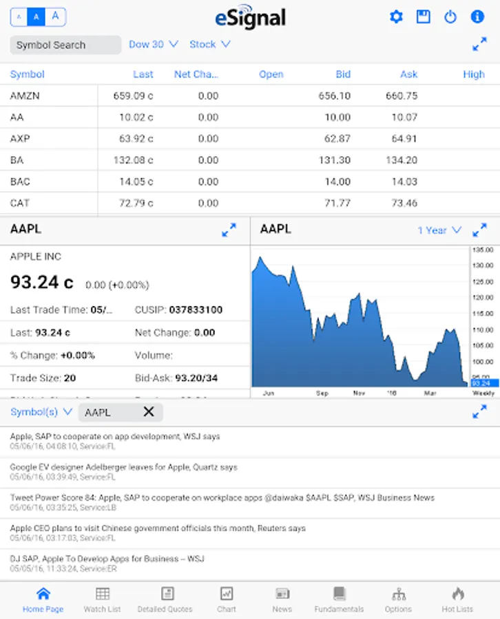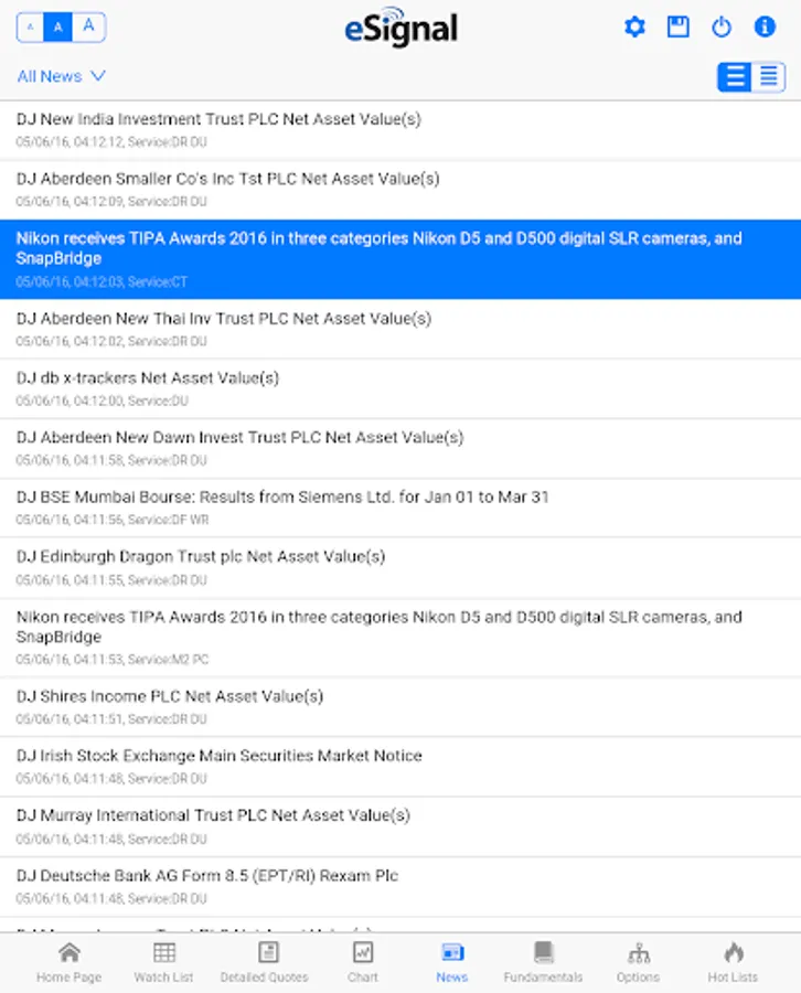 News – Streaming real-time news from respected sources such as Dow Jones.