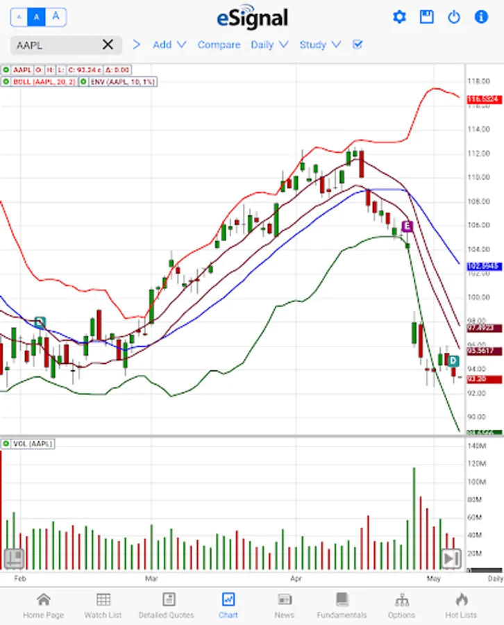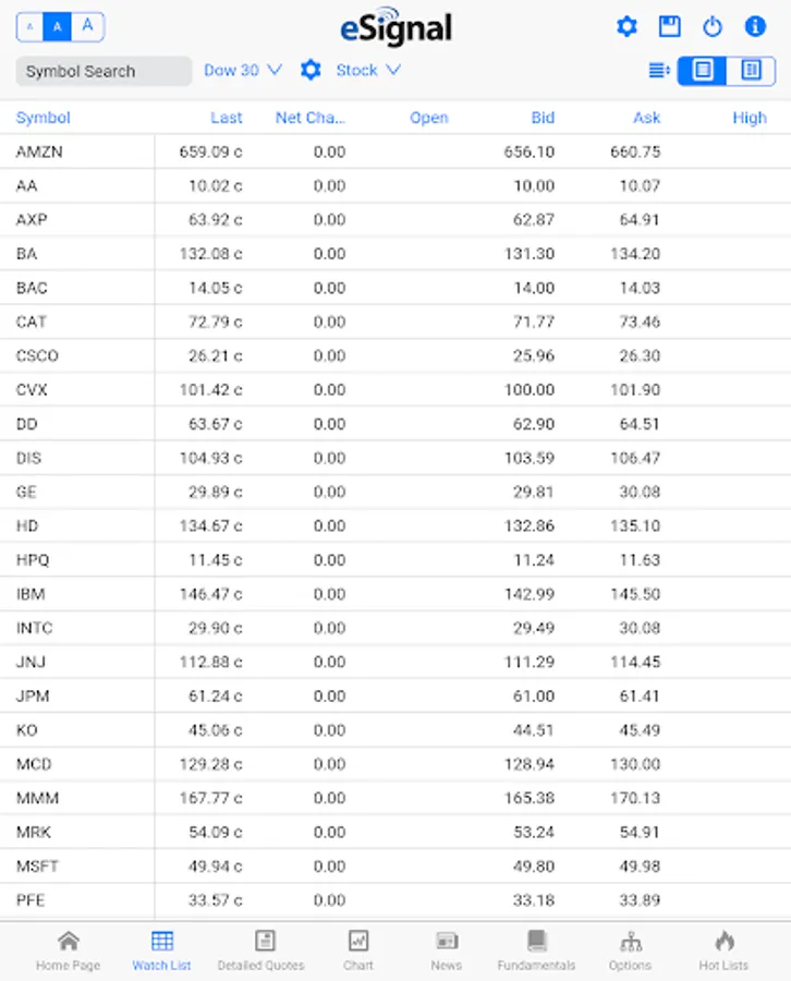 NOTE: Use of eSignal Mobile requires a subscription to eSignal or LiveCharts, real-time streaming quotes and analysis products for the active trader.