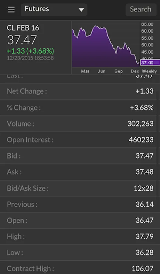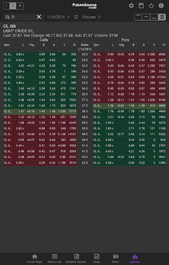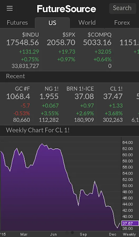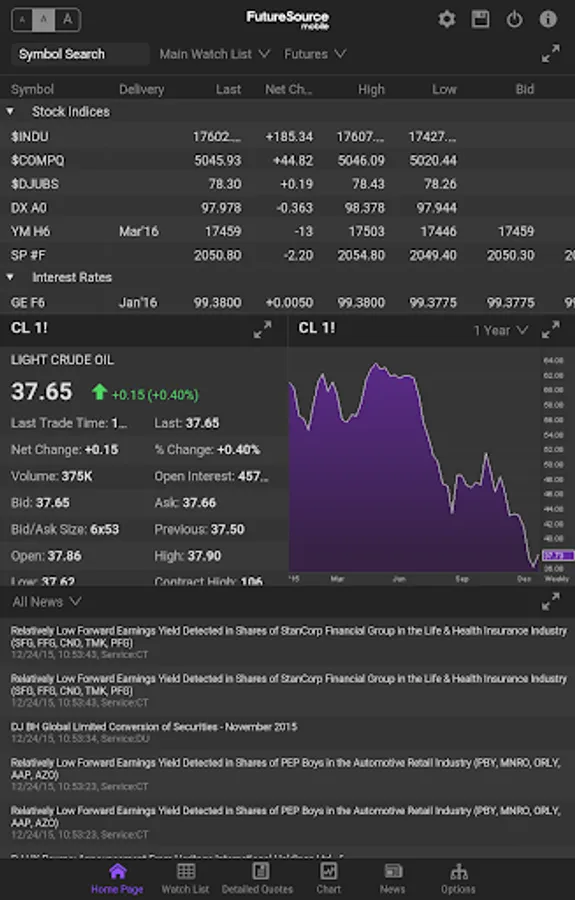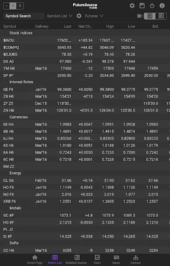 Watch List - access the core Watch List functionality you're used to from the FutureSource desktop, including your workspace watch lists. Changes made to Watch Lists will be saved to the FutureSource servers in real-time and will be accessible the next time you login to FutureSource on either your desktop or mobile device.