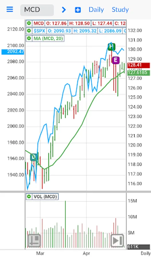 Charts – robust streaming interactive charts with overlays, comparison, studies and a wide variety of chart aggregations and time frames.