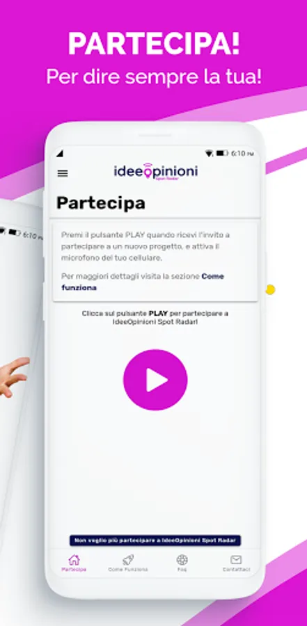 Each time a Spot Radar project starts, you will receive an invitation with details to participate. Just activate the audio through the microphone of your smartphone, and we'll take care of the rest!