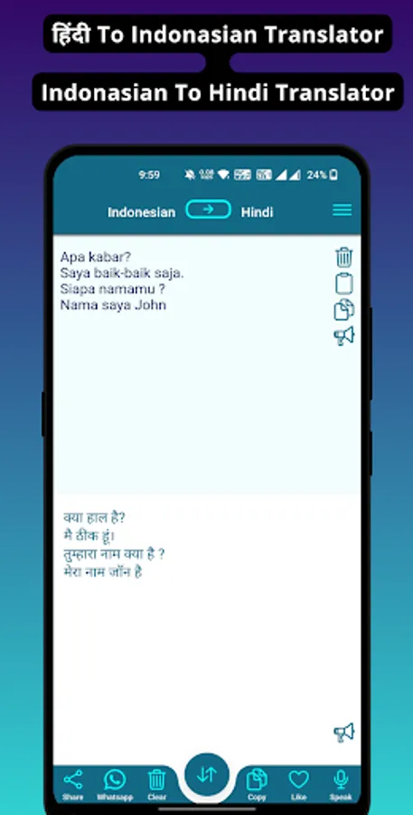 Hindi To Indonesian (Bahasa Indonesia) voice Translator app.