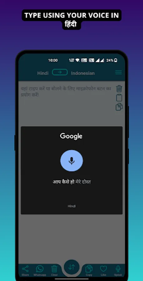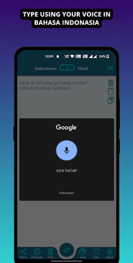 - Voice Translation - Type Hindi or Indonesian (Bahasa Indonesia) using your voice.