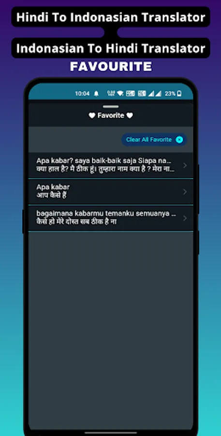 Indonesian (Bahasa Indonesia) to Hindi translator app is a free voice translator as well as text translator which translate Hindi to Indonesian (Bahasa Indonesia) to Hindi. It translates words as well as complete sentences. Best app for easy and fast Hindi to Indonesian (Bahasa Indonesia) translations.