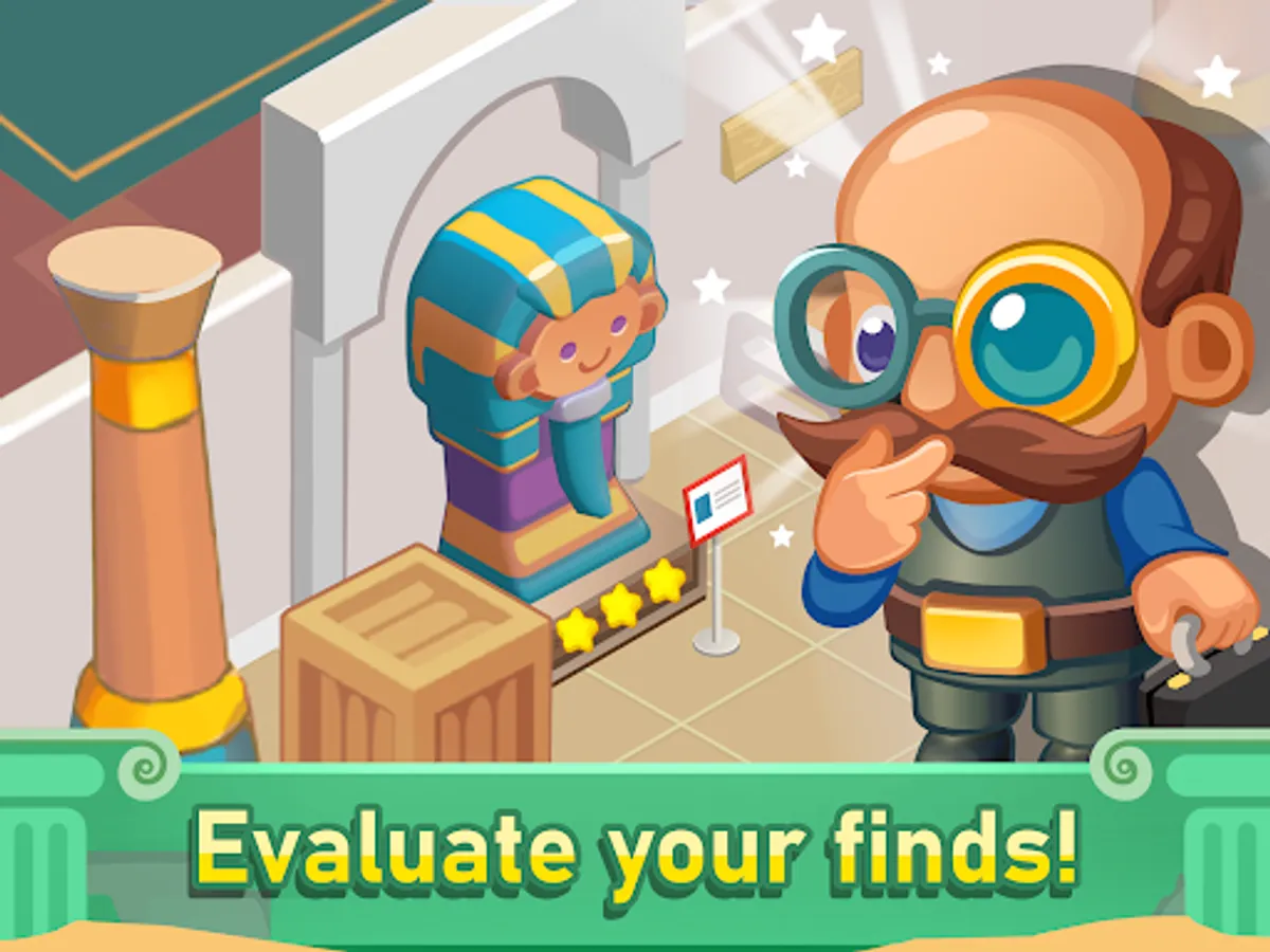 In this idle museum game, your ultimate goal is to become the most successful tycoon museum in the world. To achieve that, you'll need to explore ancient ruins and mine deep into the earth to uncover hidden treasures, fossils, and artifacts. Use your archeological skills and expertise to evaluate your finds and sell the to become a millionaire.