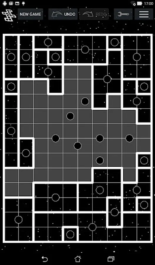 You have a rectangular grid containing a number of dots. Your aim is to draw edges along the grid lines to form galaxies. Each galaxy must contain a single dot in the center, and be symmetric!