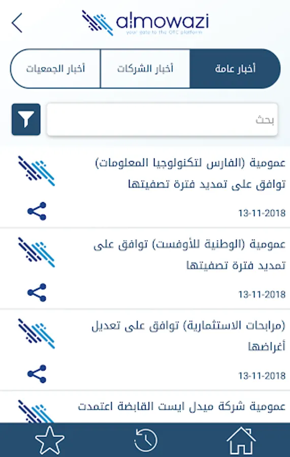 Since launching almowazi.com on September 2006, the website succeeded in achieving the goals that was created for, which is highlighting unlisted joint stock companies through gathering all news and info about these companies making it available in one place for investors and shareholder in a high professional. In addition to this, an easy and simple trading platform was presented for investors to buy or sell orders on these unlisted joint stock companies, and executing trades through official and legal channels (Stock Exchange and others) where the website is not considered as a market or a clearing company to execute these trades.