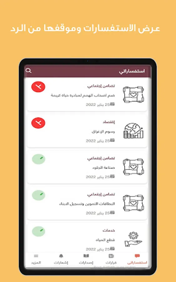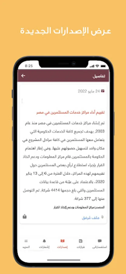 A mobile application created and developed by the Information and Decision Support Center, as a link between the government and various media institutions, with the aim of raising awareness of government policies in various fields, and adapting its multiple research tools to meet all inquiries related to numbers and statistics on various topics. This contributes to providing its users with reliable official information and numbers, provided that they are responded to within (3-5) working days in coordination with the relevant authorities.