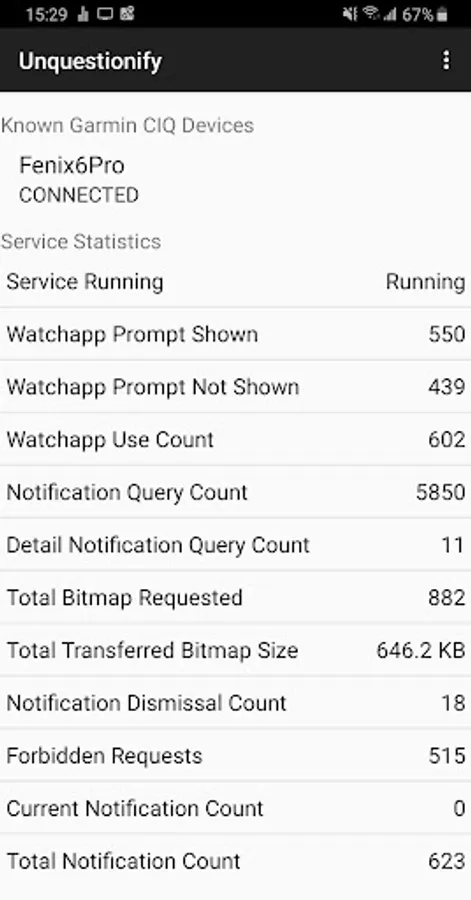 This is an Android companion app for Garmin Connect IQ watch widget "Unquestionify". This app acts as a service for the watch widget, generating 1-bit monochrome png images of notifications from selected apps. This makes it possible to display non-English text on some Garmin watches which aren't able to display non-English text.