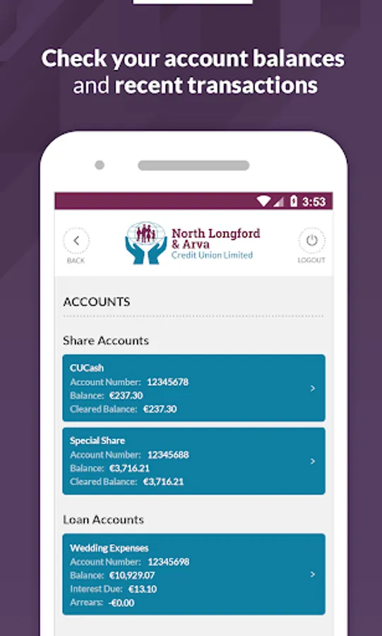 The North Longford and Arva Credit Union App allows you to manage your Credit Union accounts 'on the go' and in a way that is convenient to you.