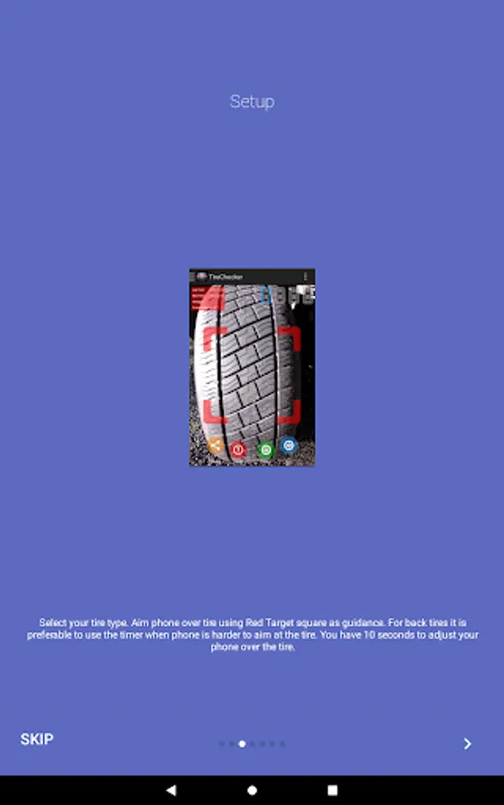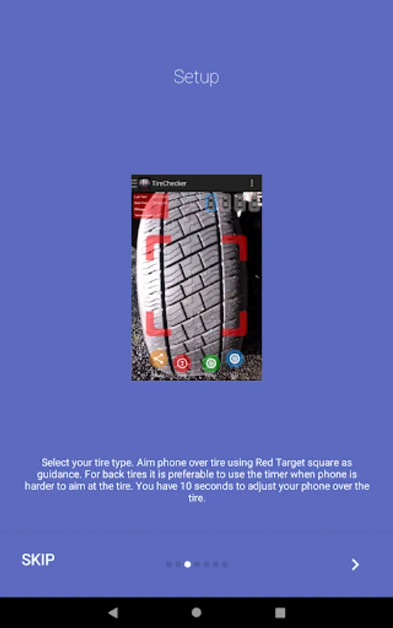 4. Timer is used when phone is harder to aim at the tire. Just select green icon and you have 10 seconds to adjust your phone over the tire.