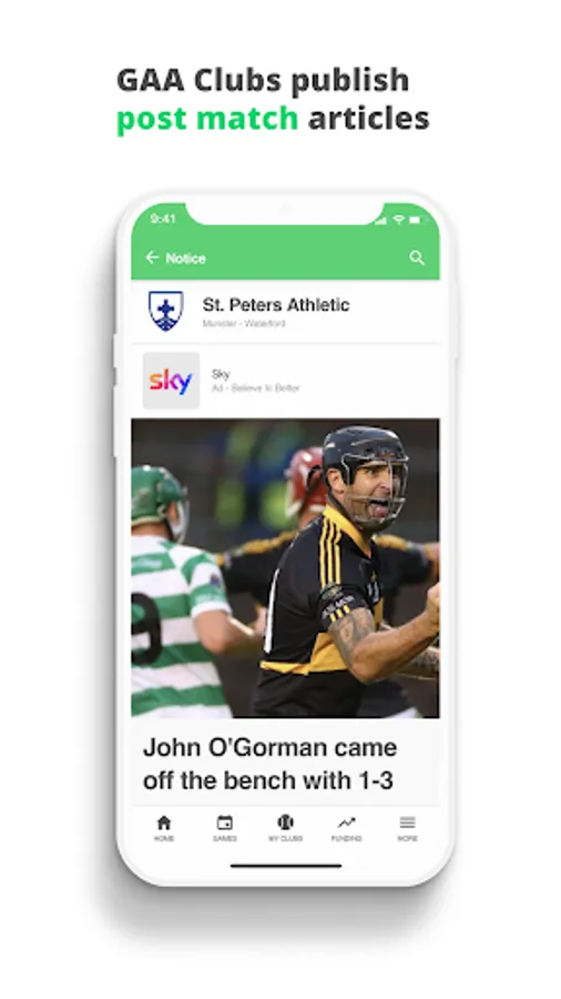 iClubs allows you to follow your local GAA club and keep up to date with all of their club news, updates, fixtures, and results and see real-time live scores