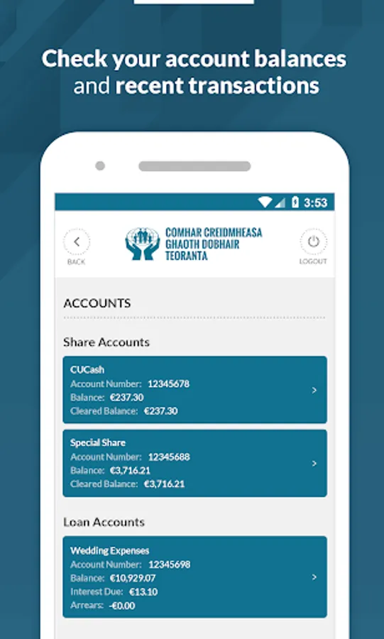 The CC Ghaoth Dobhair App is designed to help you manage your credit union accounts 'on the go' and in a way that is convenient to you.