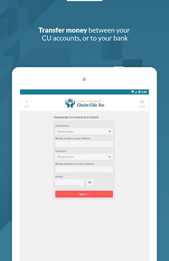 You will be asked to review, and accept, our Terms and Conditions. These can also be viewed at www.cccholmcille.ie/en-ie. Please note, all external accounts and utility bills must have already been registered through your Online Banking account, prior to using the App.