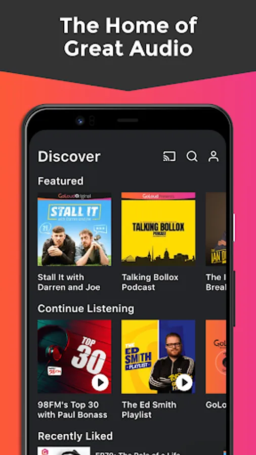 The GoLoud Player is the ultimate audio experience where you can listen to the best selection of Irish radio, the most popular podcasts from around the world and exclusive music playlists for every mood and occasion curated by our music experts.