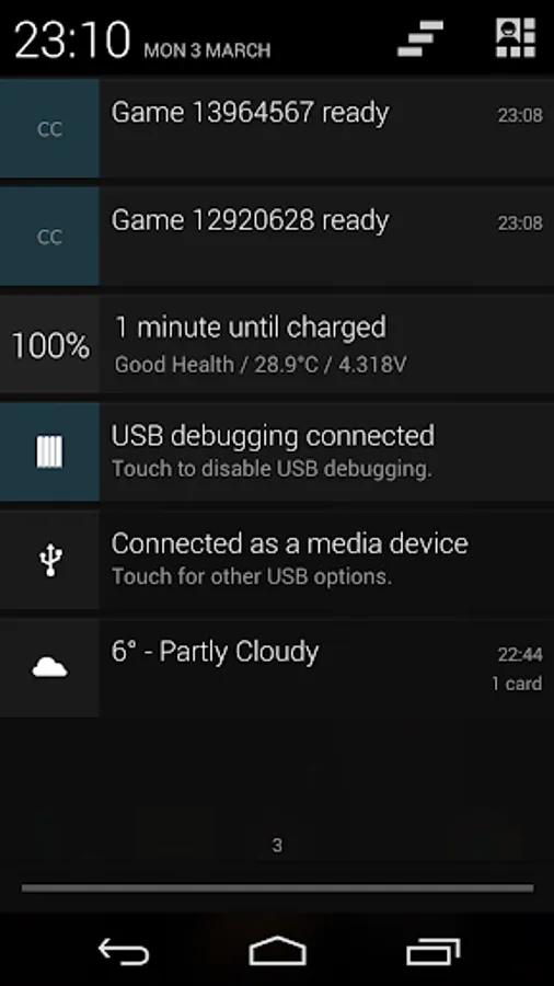 Click on the notification or widget to open your active game in your Android browser or your PC Chrome browser.
