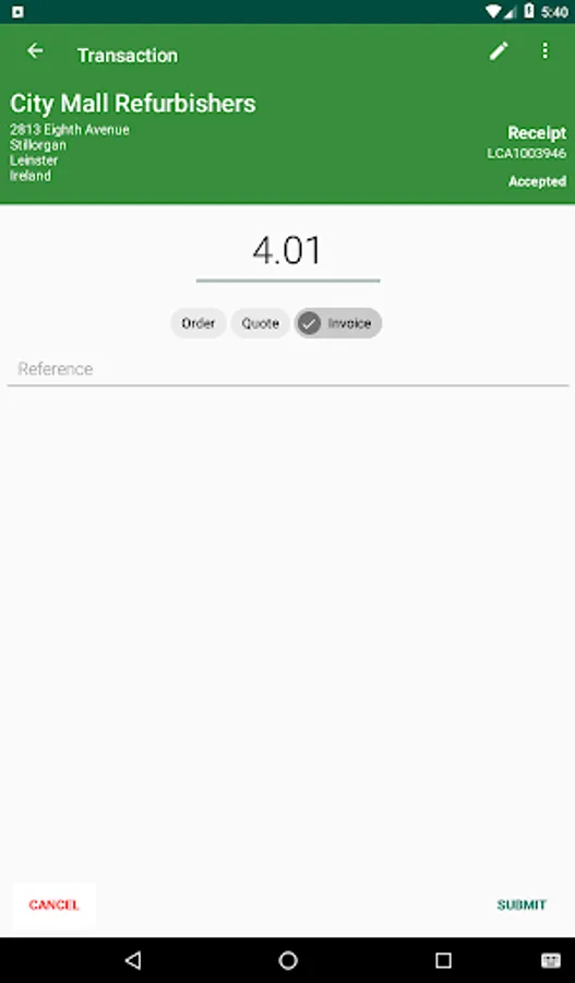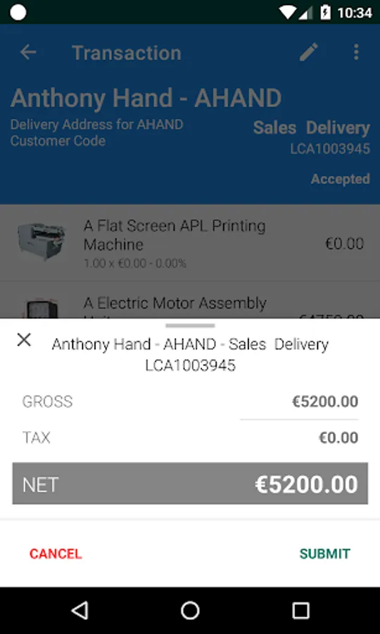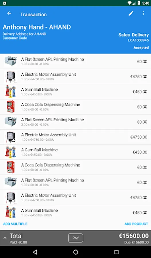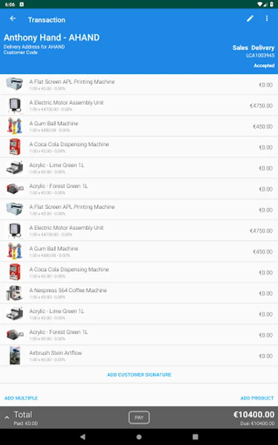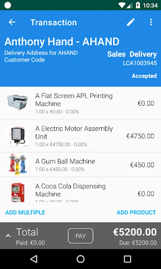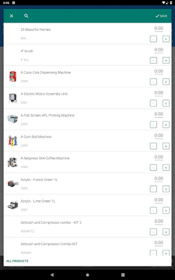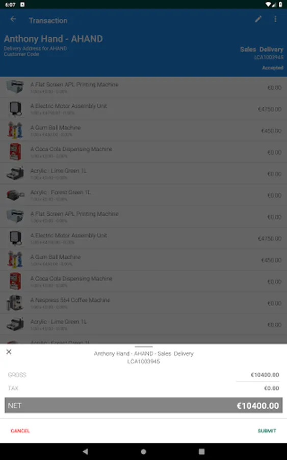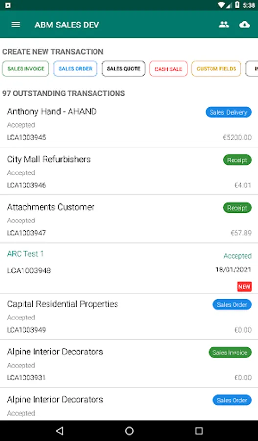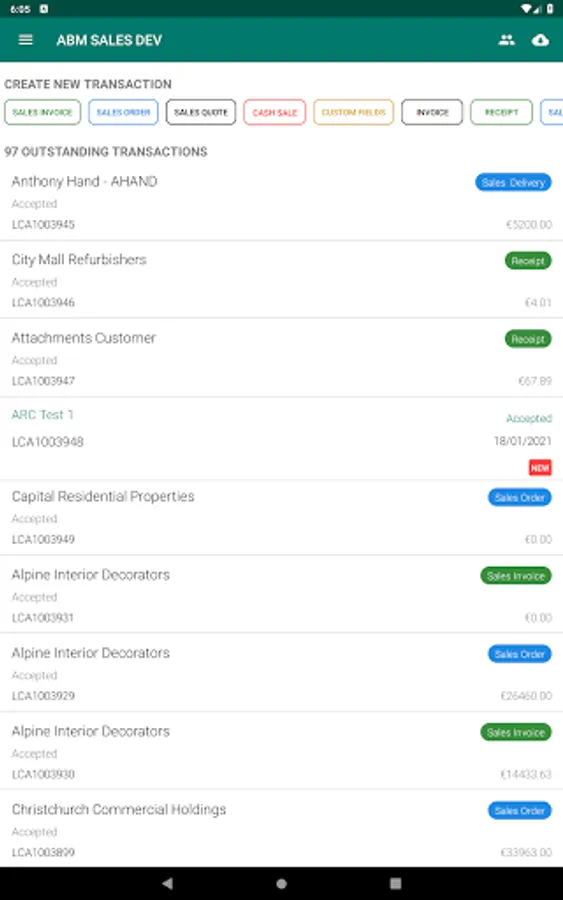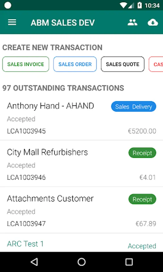 Create Quotes, Orders, Invoices and process them into ABM using your Android Phone.