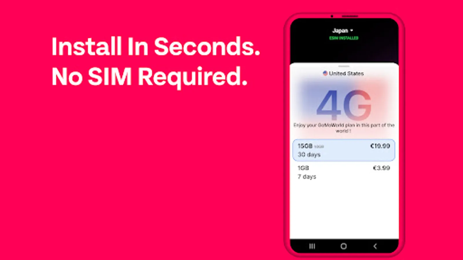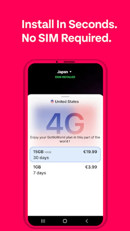 Through one app via eSIM, dodge high roaming charges and the stress of WiFi searching when abroad. Get International Travelling Data Hassle-free by GoMoWorld eSIM in 4 Easy-steps.