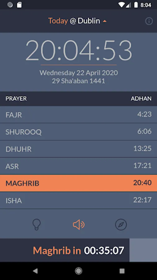 The app includes prayer times for 32 towns around Ireland including Dublin. All information is accurate and collected from the main Islamic centres in Ireland and offered to you for free (Please remember us and our families in your dua'as).