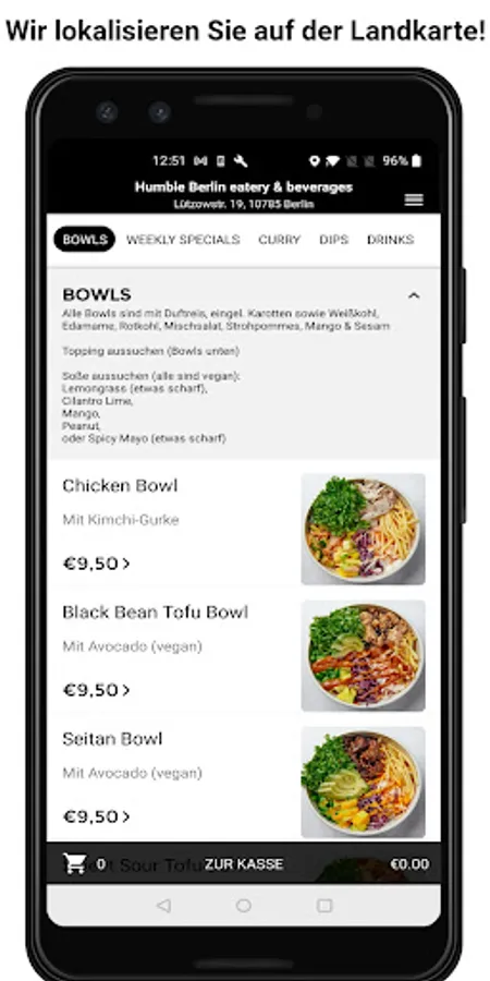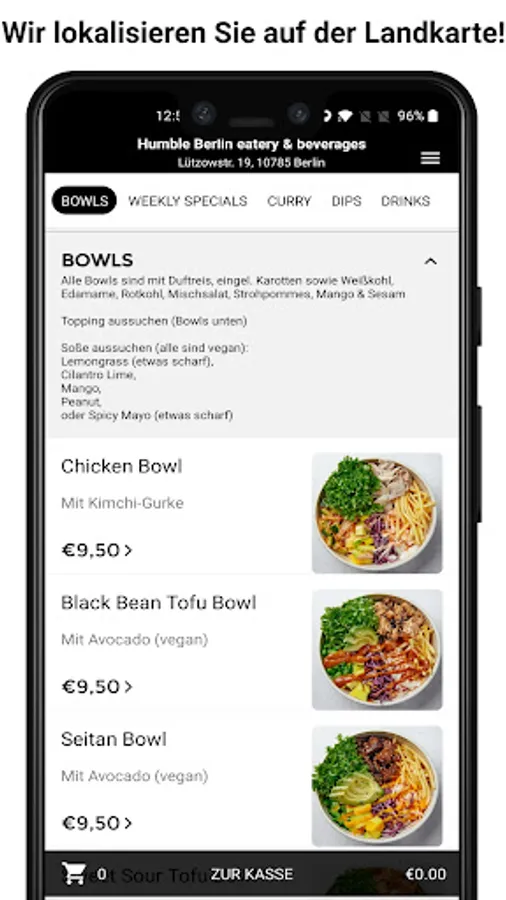Unsere köstlichen Bowls sind auf der festen Karte, die ihr euch jedes Mal aufs neue selbst gestalten könnt. Ihr könnt ihr uns entweder montags bis freitags besuchen kommen oder Montags früh schon mal einen Blick auf unsere Webseite werfen, um zu gucken, was es neues auf der Wochenkarte gibt und ob euer Lieblingsgericht endlich wieder auf der Karte steht ;)