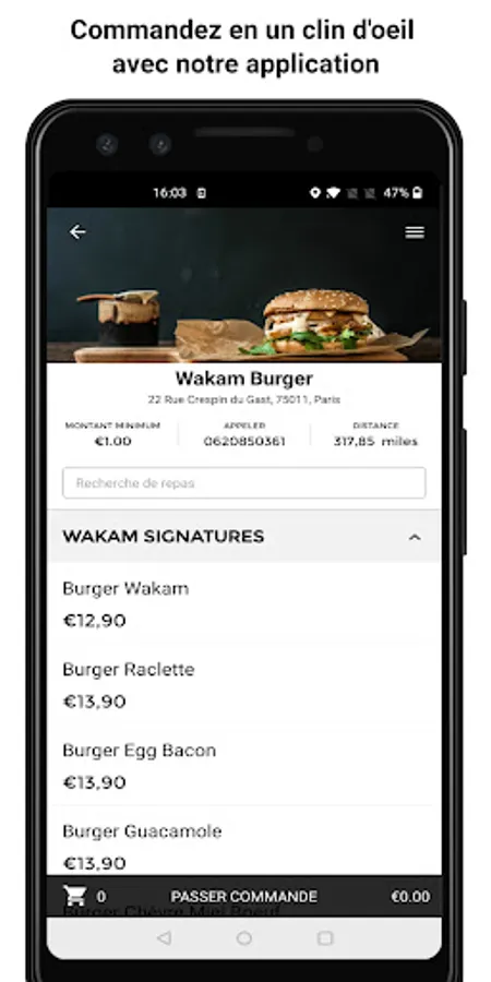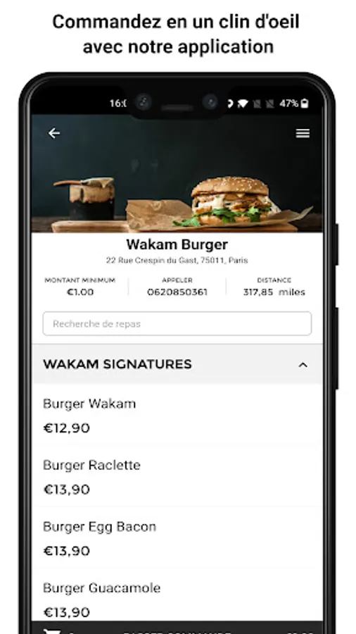 Commandez en quelques clics avec Wakam Burger ! N’attendez plus et faites-vous plaisir ! En livraison ou à emporter, vos plats favoris vous attendent chez Wakam Burger !