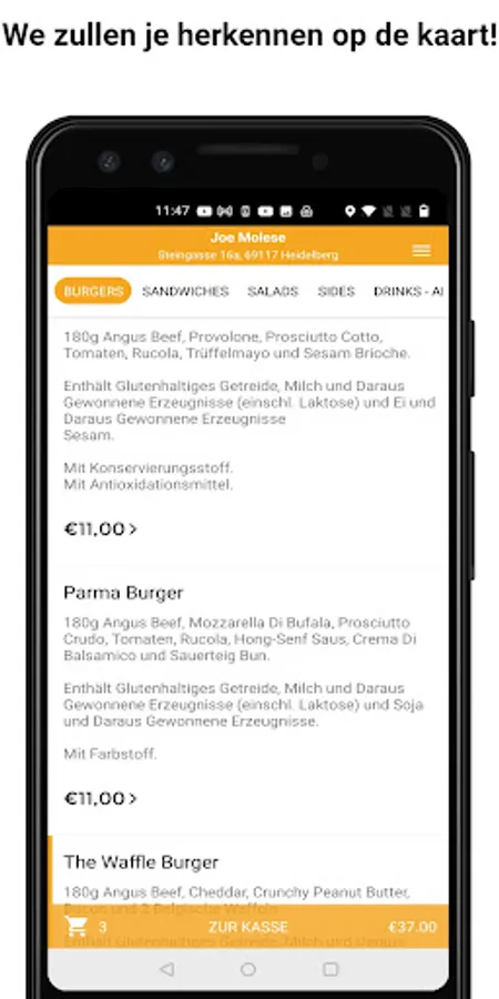 Herzlich Willkommen auf unserer Seite! Hast du dich schon einmal gefragt, warum leckere Burger + Heidelberg = Joe Molese? Weil die natürliche AusLESE die MoLESE vorgezogen hat, stecken wir Herz und Seele in jeden Burger, den wir zubereiten. Ob einen klassischen Cheeseburger, exzellenten Parma Burger mit Rucola und Mozzarella, veganen Burger oder einen Waffelburger – nach einem Besuch bei uns wirst du den Geschmack unserer Burger nicht mehr vergessen können. Bei uns stehen auch leckere Sandwiches, Cheesesteaks, Salate und Vieles mehr zur Auswahl. Wir legen viel Wert auf die freundliche Atmosphäre, die bei uns herrscht und alle erfreut. Aber genug vom LESEn, komm einfach vorbei und koste unsere Burger! Jetzt auch Lieferung & Abholung möglich.