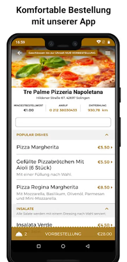Willkommen bei Tre Palme Pizzeria Napoletana in Solingen. All unseren Pizzen werden mit frischer Mozzarella zubereitet. Wir freuen uns auf Ihre Bestellung!