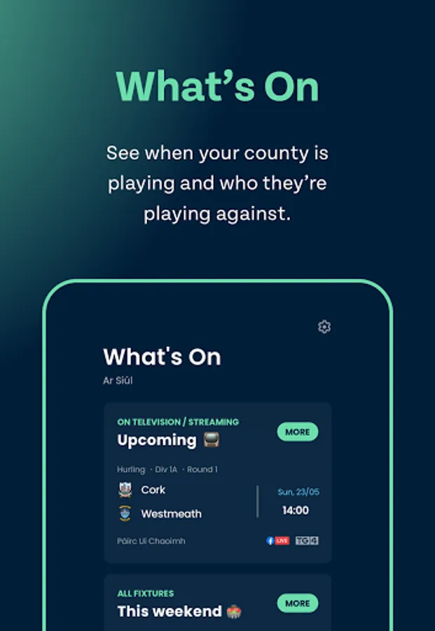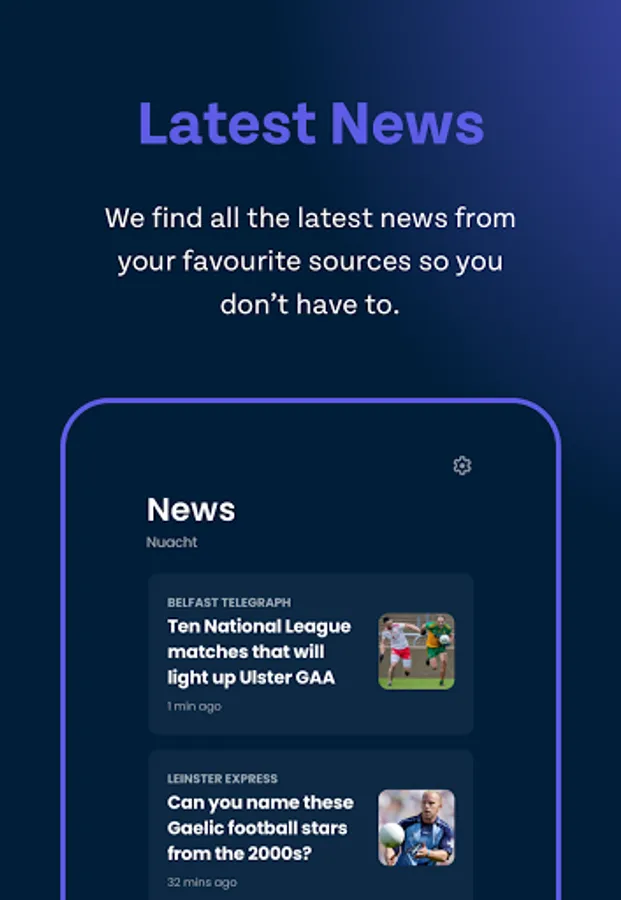 Need help, have feedback or want to request a new feature? Contact us in app via the Settings menu or email: hello@gaelsport.ie