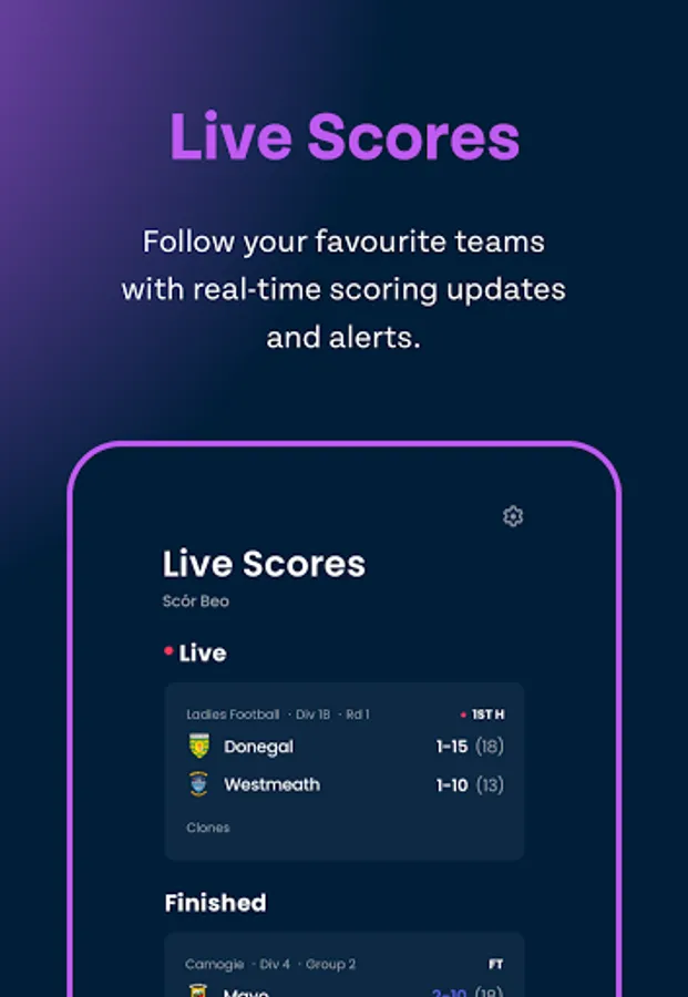 Gaelsport is your go-to app for GAA, LGFA and Camogie games.