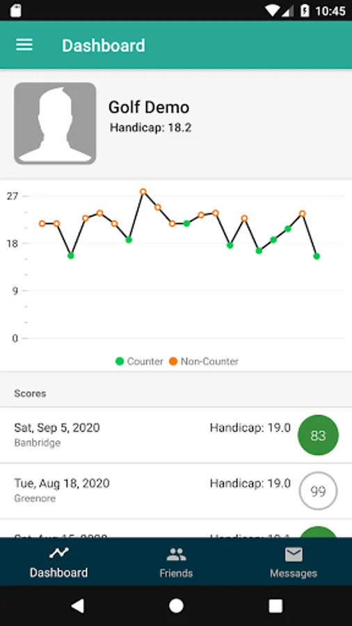 - Monitor your handicap and scoring history over time. See which scores are counting toward your handicap index.