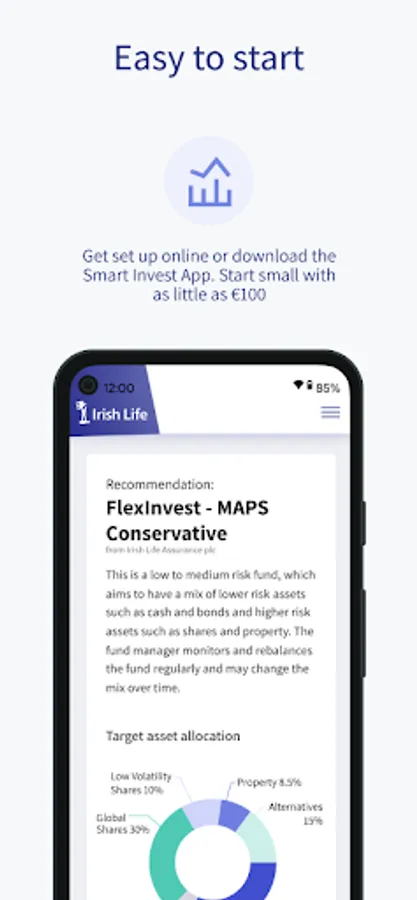▪ Get simple, digital investment advice from Irish Life Financial Services to invest in the FlexInvest plan with a Multi-Asset Portfolio (MAPs) fund that is right for you.