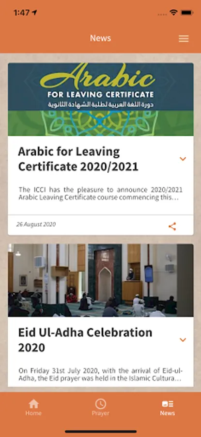 In addition to the daily prayer times, including the iqamah times for the communal prayers in the mosque, the app also includes a daily hadith as well as news and updates from the Centre.