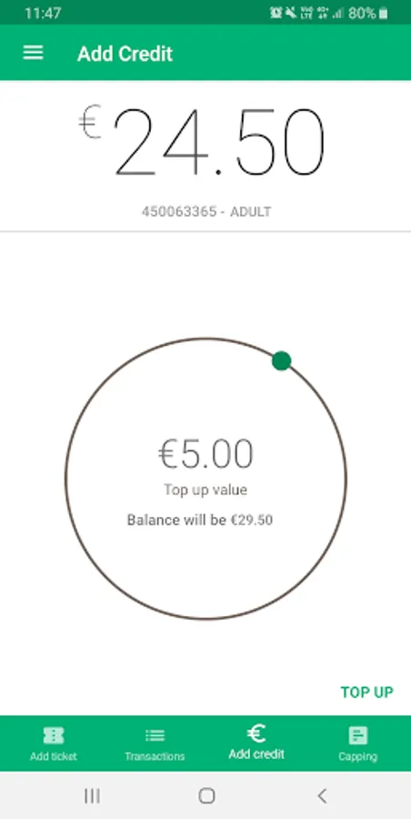 * Top-up instantly by using the dial to select a top-up value or tap to enter your desired amount