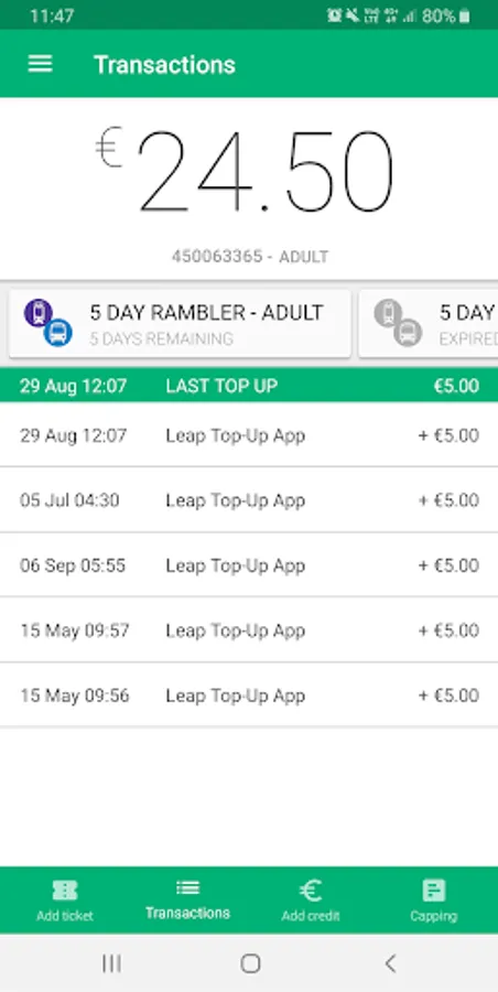 The Leap Top-Up app allows you to instantly check your balance, top-up your Leap Card and purchase tickets - directly from your NFC-enabled device.