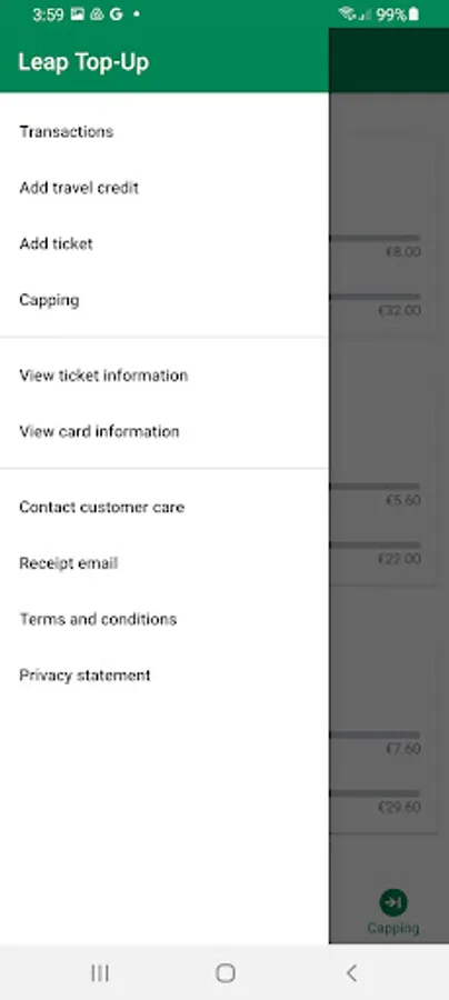 Note: The Leap Top-up app is only available on NFC-enabled Android devices running Android 6.0 or later.