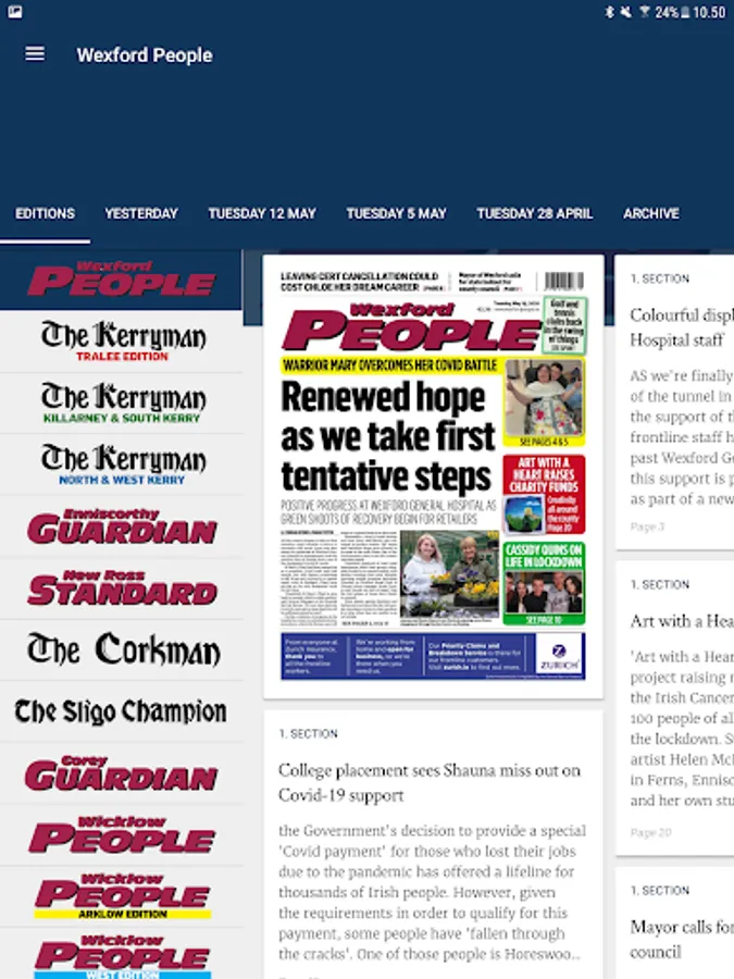 Then look no further than the Local Irish Newspaper app that gives you access to the Wexford People ePaper, The Kerryman Tralee Edition ePaper, The Kerryman Killarney & South Kerry Edition ePaper, The Kerryman North & West Kerry ePaper, Enniscorthy Guardian ePaper, New Ross Standard ePaper, The Corkman ePaper, The Sligo Champion ePaper, Gorey Guardian ePaper, Wicklow People ePaper, Wicklow People Arklow Edition ePaper, Wicklow People West Wicklow Edition ePaper, Bray People ePaper, Dundalk Argus ePaper, Drogheda Independent ePaper