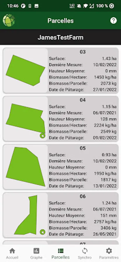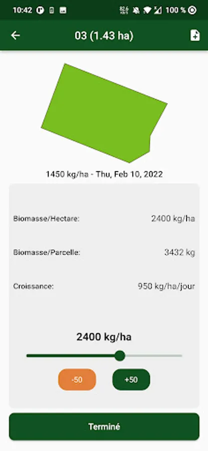 In this application, you just have to enter the biomass measured by the herbometer and add it to the corresponding plot on the map of your farm. Nothing could be simpler. The application will then show you the biomass/hectare and per plot, the average height, as well as your previous grazing dates.