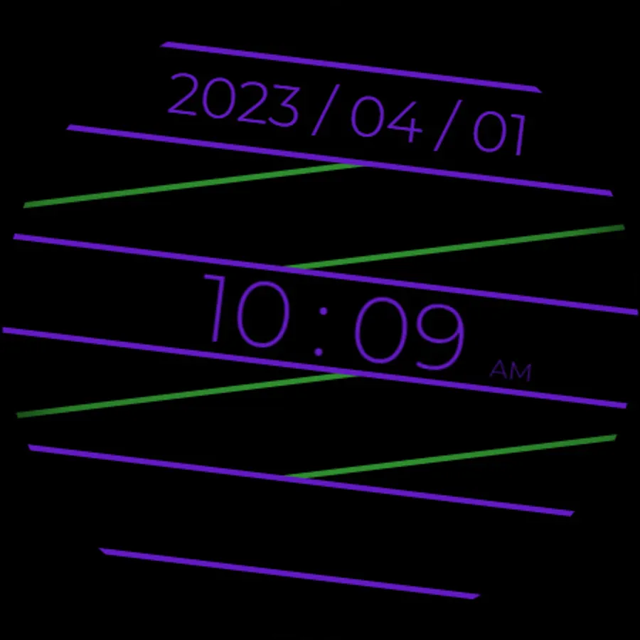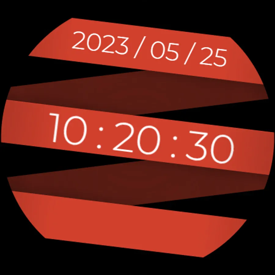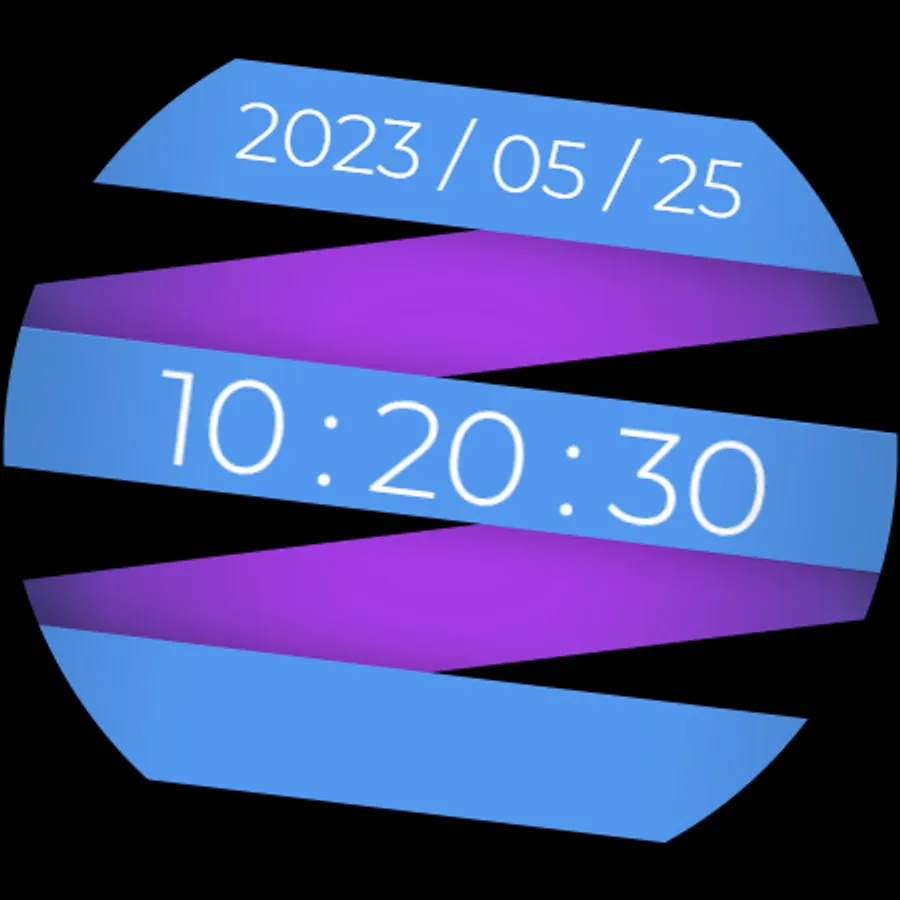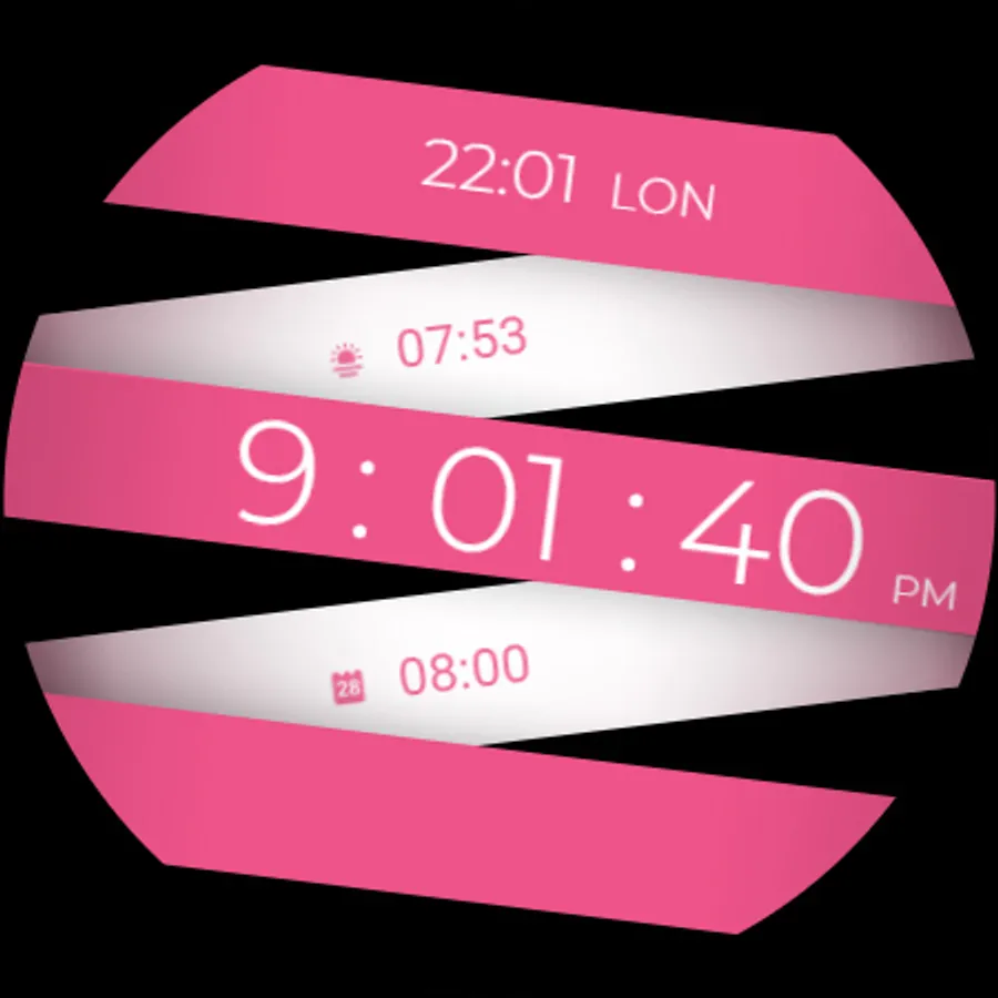 A simple, colourful, digital watch face in the shape of a ribbon. With several colour combinations, custom complication slots, date format options, and aod support.