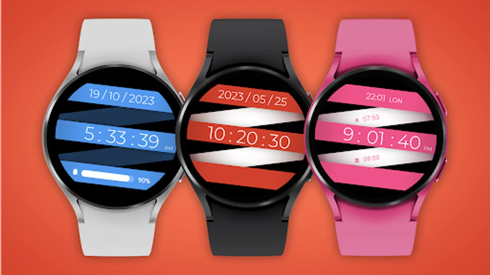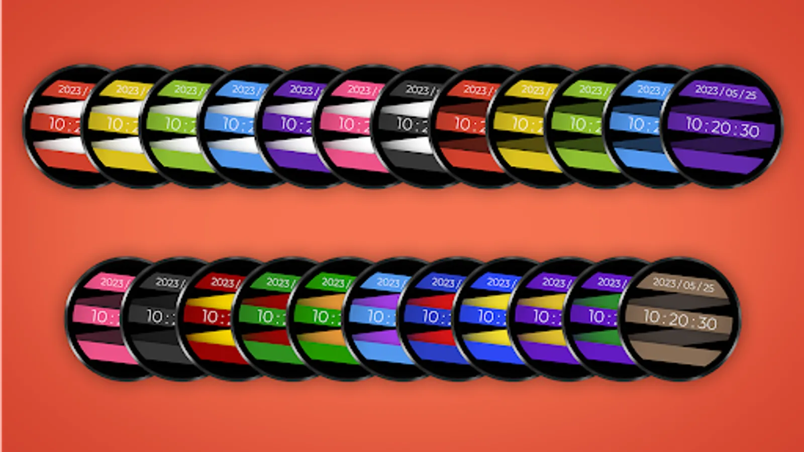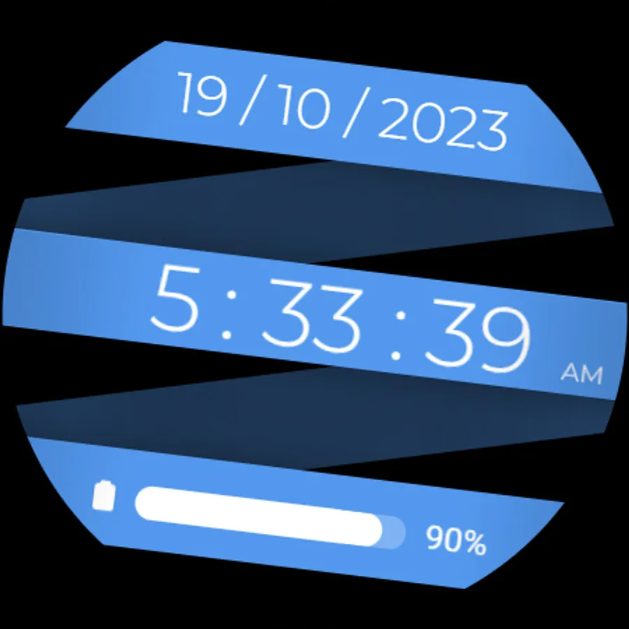 A simple, colourful, digital watch face in the shape of a ribbon. With several colour combinations, custom complication slots, date format options, and aod support.