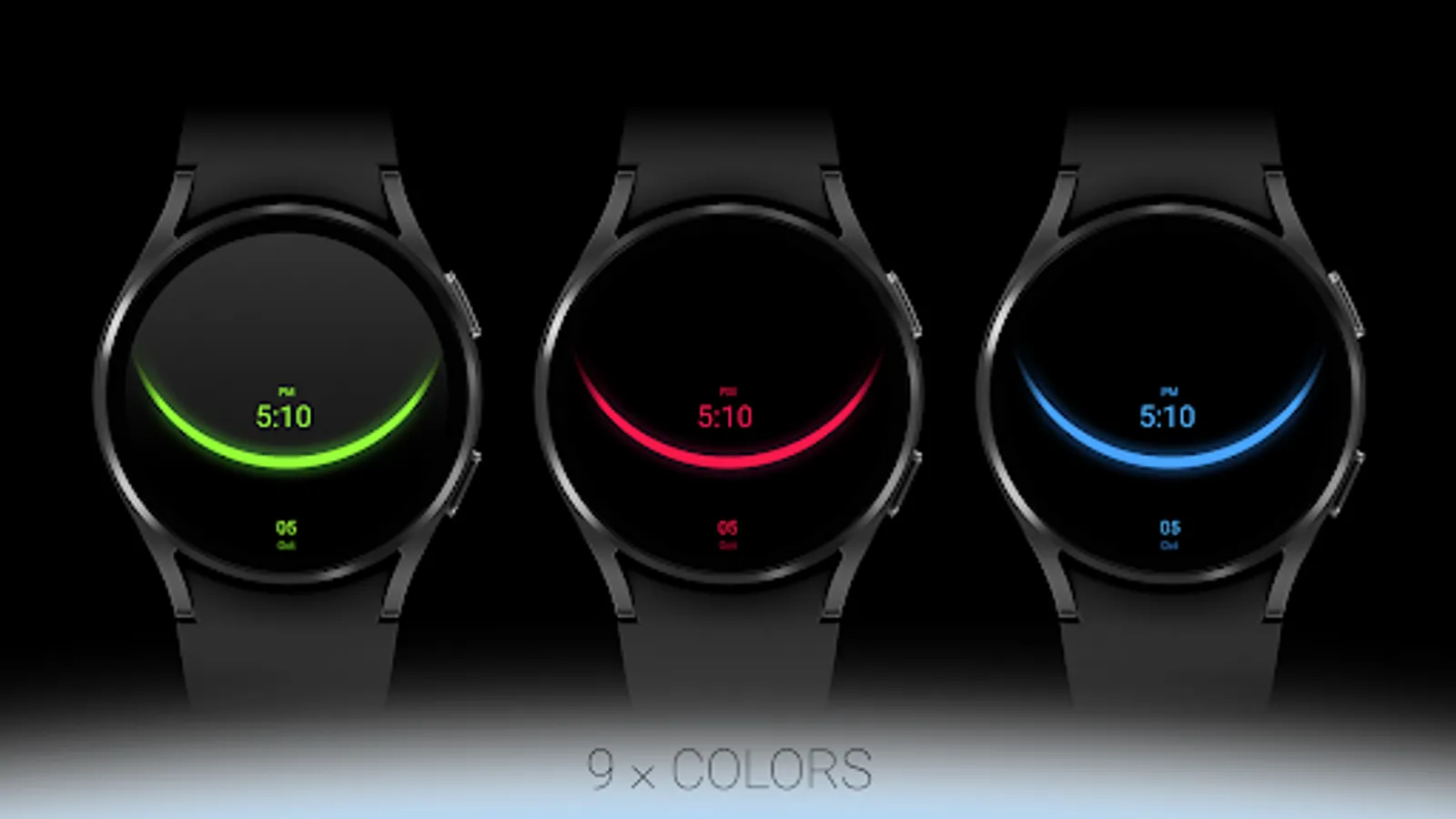 Featuring three styles, nine colours, and one custom complication slot. Also supports 12 or 24 hour and always on display.