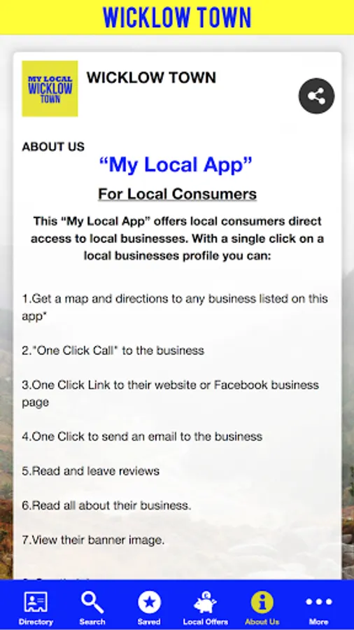 THE WICKLOW APP "A LOCAL APP FOR LOCAL PEOPLE". My Local Apps, brings local business, the community and local consumers together. Consumers recieve regular offers from local business and details of local community events. Without the noise of traditional social media.Local business owners can advertise on their local app for free.